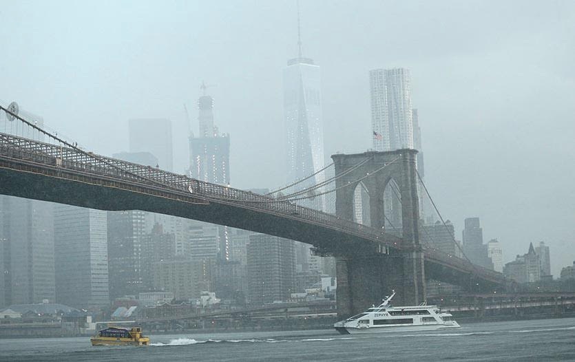 | Figure 2. Haze envelops New York City on July 25, 2016, when the temperature hit 93°F during a major heat wave. Six of NYC’s ten ozone monitoring stations recorded 8-hour ozone levels in excess of the federal standard of 70 ppb during that week’s heat wave. Image credit: Kena Betancur/Getty Images. |
