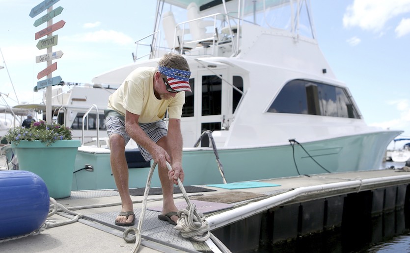| Figure 1. Rob Docko ties a knot while securing his boat at the St. Andrews Marina in Panama City, Fla., Monday, Oct. 8, 2018, to prepare for Hurricane Michael. Image credit: Patti Blake/News Herald via AP. |